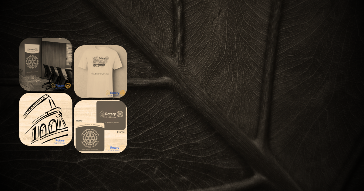 L2 x Rotary Club di Roma - banner; PVC-free/ - tshirt; 100% cotone organico certificato GOTS/ - design logo per il centenario del club/ - biglietti da visita; carta riciclata